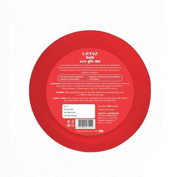 Lavino Tomato Soothing Gel, Tomato Gel Bangladesh, Skin Brightening Gel, Lavino 99% Tomato Gel, Soothing Gel for Face and Body, Tomato Extract Gel, Hydrating Tomato Gel, Lavino Gel 250ml